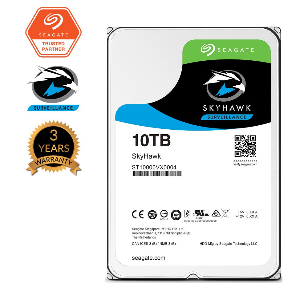 - Ổ cứng Seagate SkyHawk này có thể hoạt động trong khoảng nhiệt độ từ 0°C – 70°C.Xử lý 180TB khối lượng công việc 1 năm, gấp 3 lần khối lượng công việc của một ổ cứng máy tính để bàn và được hỗ trợ bảo hành lên đến 3 năm.